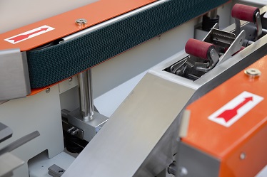 7、下部的膠帶作業(yè),在側(cè)面輸送帶驅(qū)動(dòng)下通過機(jī)器,有膠帶分割器迅速簡便地貼上膠帶。
