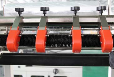 5.自動送料,制袋長度由電眼和計時器的組合自動控制;配有廢料感應電機,可自動卷取廢邊。